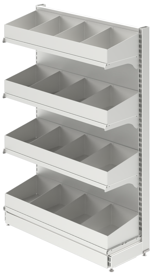 - Sac Raflar 300/400 0,70mm, 500/600 0,80mm kalınlıkta ve takviyeli, iç köşe ve dış köşe sac raflar ise 1,00mm kalınlıkta olup, raf kolları 300 2,00mm, 400 2,50mm, 500/600 3,00mm kalınlığında ve 3 tırnaklıdır. Rafı düz veya eğimli kullanabilme ve rafa kolay geçebilme özelliğindedir.