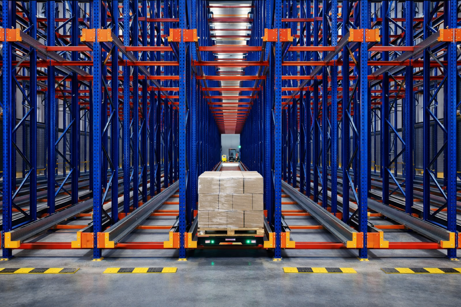 Shuttle racking systems use electric shuttle carriers (or “shuttle machines”) to efficiently load and unload pallets within rack channels. This allows multiple pallets to be stored in blocks, maximizing space and operational efficiency.